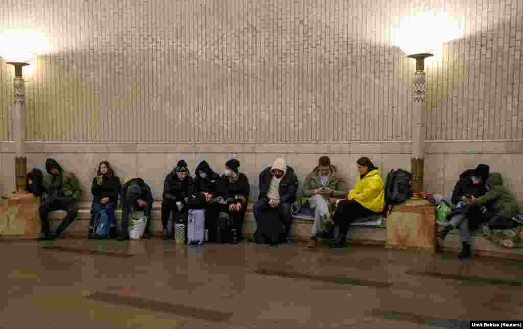 Убежище. Жители Киева прячутся в метро от российских ракет